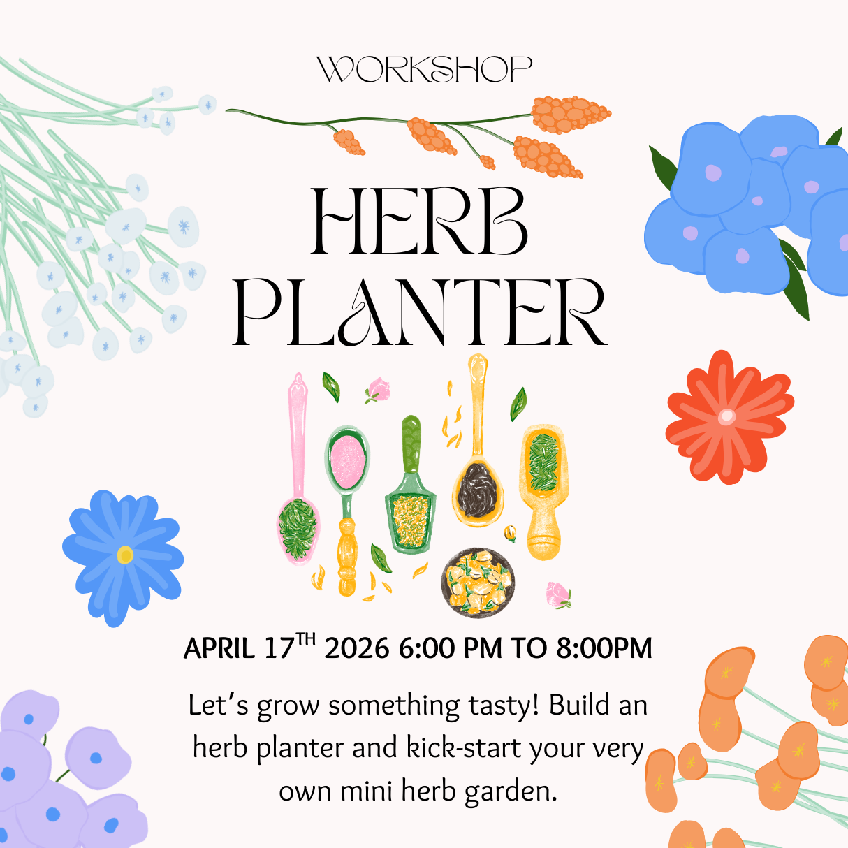 Let’s grow something tasty at our Herb Planter Workshop! Build your own herb planter and kick-start a mini herb garden perfect for cooking and home use. This hands-on gardening workshop includes expert instruction and all materials, making it ideal for beginners, food lovers, and anyone looking to grow fresh herbs at home.